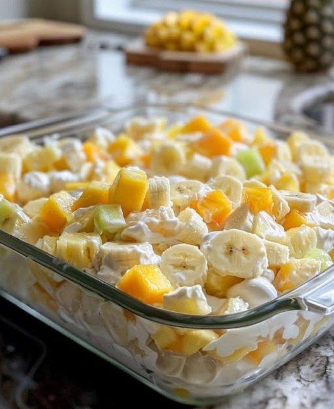Il y a des plats dans la vie qui ne sont pas de simples recettes. Ce sont de petits voyages dans le temps. Ils nous ramènent à des moments lointains, à des cuisines qui n'existent peut-être plus, à des êtres chers qui nous ont marqués, souvent sans même qu'ils s'en rendent compte. Certains plats sont comme des clés : on prend une cuillère, et soudain une porte s'ouvre dans notre cœur, laissant entrer la lumière et la chaleur, un parfum familier, une sensation de chez-soi. C'est exactement ce qu'il en est de cette salade de fruits que ma grand-mère préparait chaque année. Dès que les mois froids s'achevaient et que les premiers beaux jours arrivaient, quand le soleil brillait plus longtemps et que le jardin s'éveillait, il y avait cette salade de fruits – fraîche, colorée, sucrée, onctueuse et pleine d'amour.